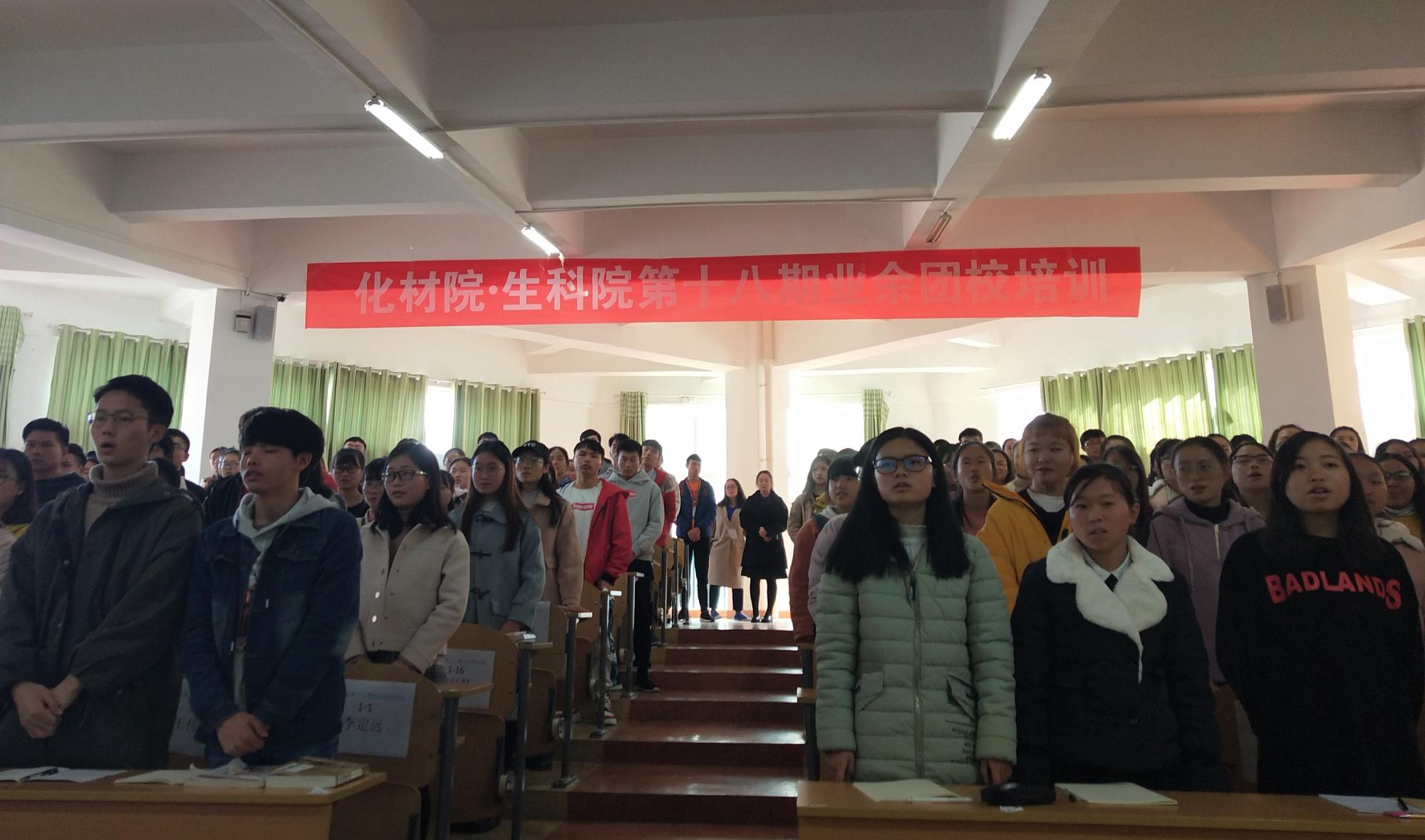 開班典禮上,全體團(tuán)員奏唱團(tuán)歌、重溫入團(tuán)宣誓儀式。任俊鵬致開幕詞,并開授首次團(tuán)課。他圍繞學(xué)習(xí)十九大重要精神、習(xí)近平總書記重要講話,結(jié)合其中重要知識(shí)及適當(dāng)?shù)睦樱?xì)致而生動(dòng)地講述。重點(diǎn)指出:其一,青年學(xué)生要站在科技前沿,應(yīng)用自己所學(xué)知識(shí)武裝頭腦,應(yīng)積極參與扶貧攻堅(jiān),參與基層建設(shè)。其二,青年的價(jià)值取向決定了整個(gè)社會(huì)的價(jià)值取向,而青年正處于價(jià)值形成的關(guān)鍵時(shí)期。作為當(dāng)代大學(xué)生,要勤學(xué)修德、明辨是非,在努力學(xué)好專業(yè)知識(shí)的同時(shí)要注重培養(yǎng)誠(chéng)信意識(shí)、服務(wù)意識(shí)。講授結(jié)束后,學(xué)員通過觀看教學(xué)視頻“三會(huì)兩制一課”進(jìn)行自主學(xué)習(xí)。第三階段,梁濤以“中國(guó)共產(chǎn)主義青年團(tuán)是一個(gè)什么樣的組織?”的話題設(shè)問,對(duì)共青團(tuán)的基本性質(zhì)、共青團(tuán)的創(chuàng)建、共青團(tuán)的入團(tuán)條件等對(duì)黨團(tuán)的基本知識(shí)進(jìn)行了詳細(xì)的講解。在整個(gè)學(xué)習(xí)過程中,同學(xué)們回答問題積極主動(dòng)。