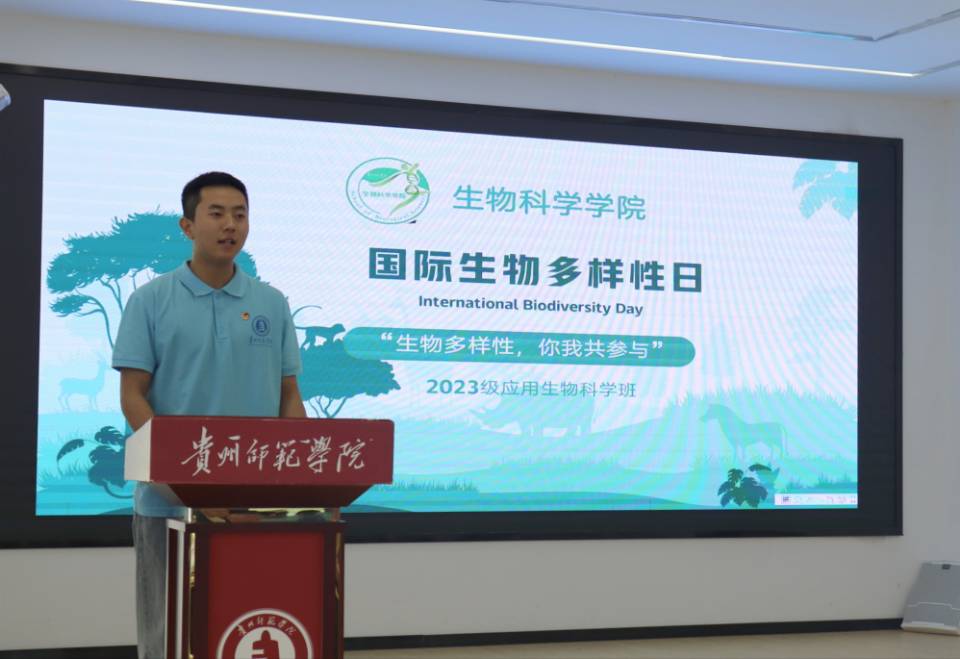 活動開始,一段節(jié)奏感十足的快板《生物的秘密》拉開了活動的序幕,團(tuán)員代表通過這種富有創(chuàng)意的表演形式強(qiáng)調(diào)了生物多樣性的重要性,并呼吁大家珍愛和保護(hù)自然界的豐富多樣。隨后,院級優(yōu)秀共青團(tuán)員羅炫以“青年如何保護(hù)生物多樣性”為題進(jìn)行發(fā)言。互動環(huán)節(jié)中,參會同學(xué)熱烈討論,積極分享自己的看法。緊接著,15位23級應(yīng)用生物科學(xué)班的同學(xué)共同演繹了感人至深的合唱《我愛你,中國》,將對祖國山河與生態(tài)環(huán)境的熱愛傳遞給每一位聽眾,現(xiàn)場氣氛達(dá)到高潮。