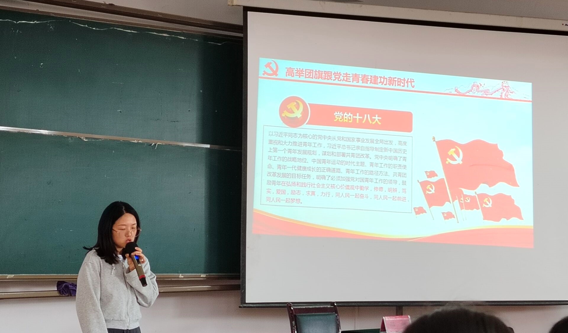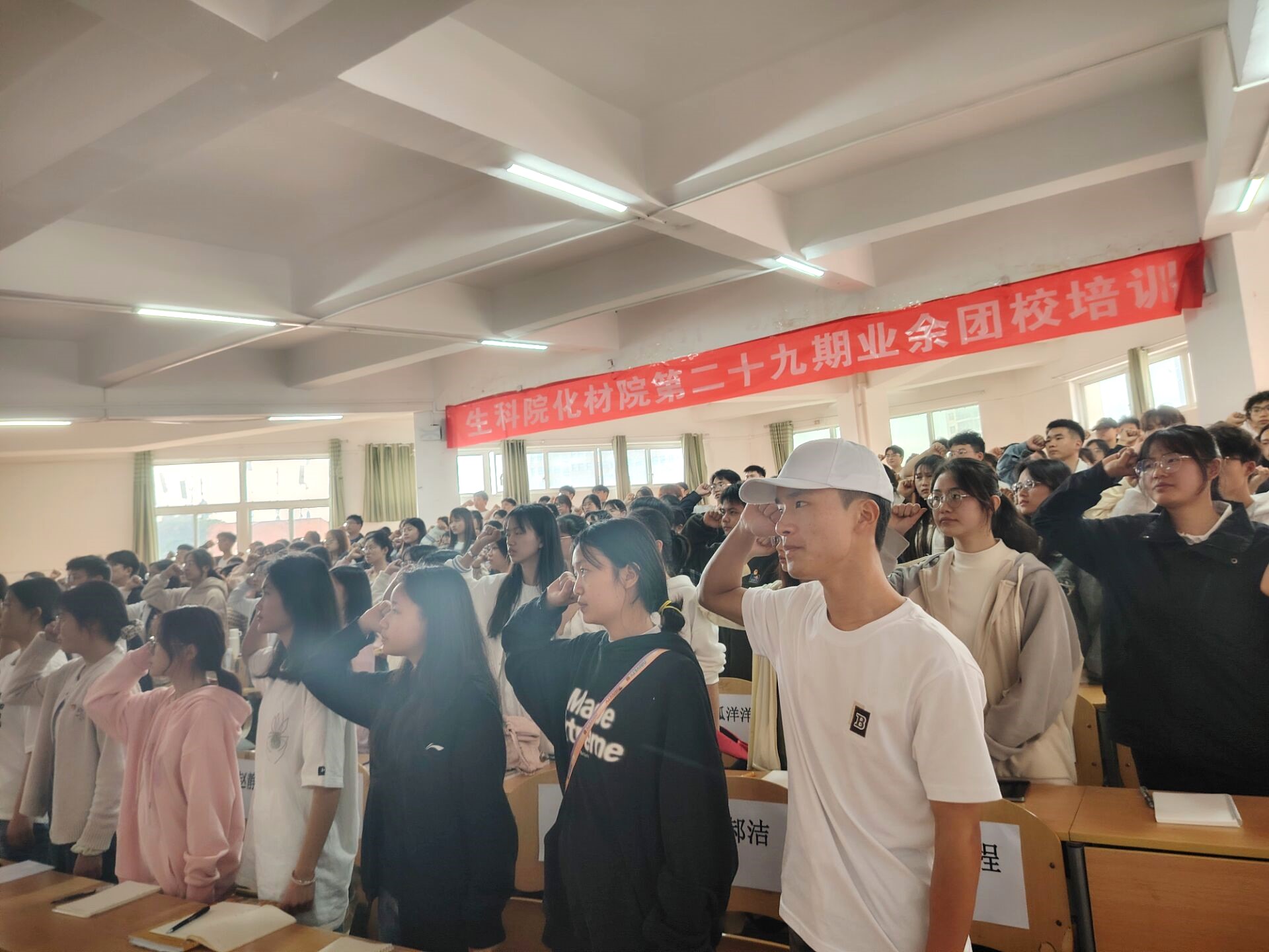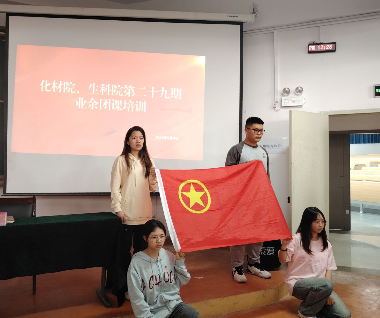 5月6日中午,開班儀式及第二十九期業(yè)余團(tuán)校培訓(xùn)會(huì)第一講順利開展,本次培訓(xùn)由化學(xué)與材料學(xué)院團(tuán)委書記邵琳主講。培訓(xùn)開始,主持人首先對(duì)參與業(yè)余團(tuán)校培訓(xùn)的紀(jì)律要求進(jìn)行了強(qiáng)調(diào),并帶領(lǐng)全體成員齊唱共青團(tuán)團(tuán)歌,隨后進(jìn)行中國共產(chǎn)主義青年團(tuán)入團(tuán)宣誓。緊接著,邵琳以“中國共青團(tuán)發(fā)展史及共青團(tuán)基本理論”、“高舉團(tuán)旗跟黨走,青春建功新時(shí)代”為主題展開培訓(xùn)。