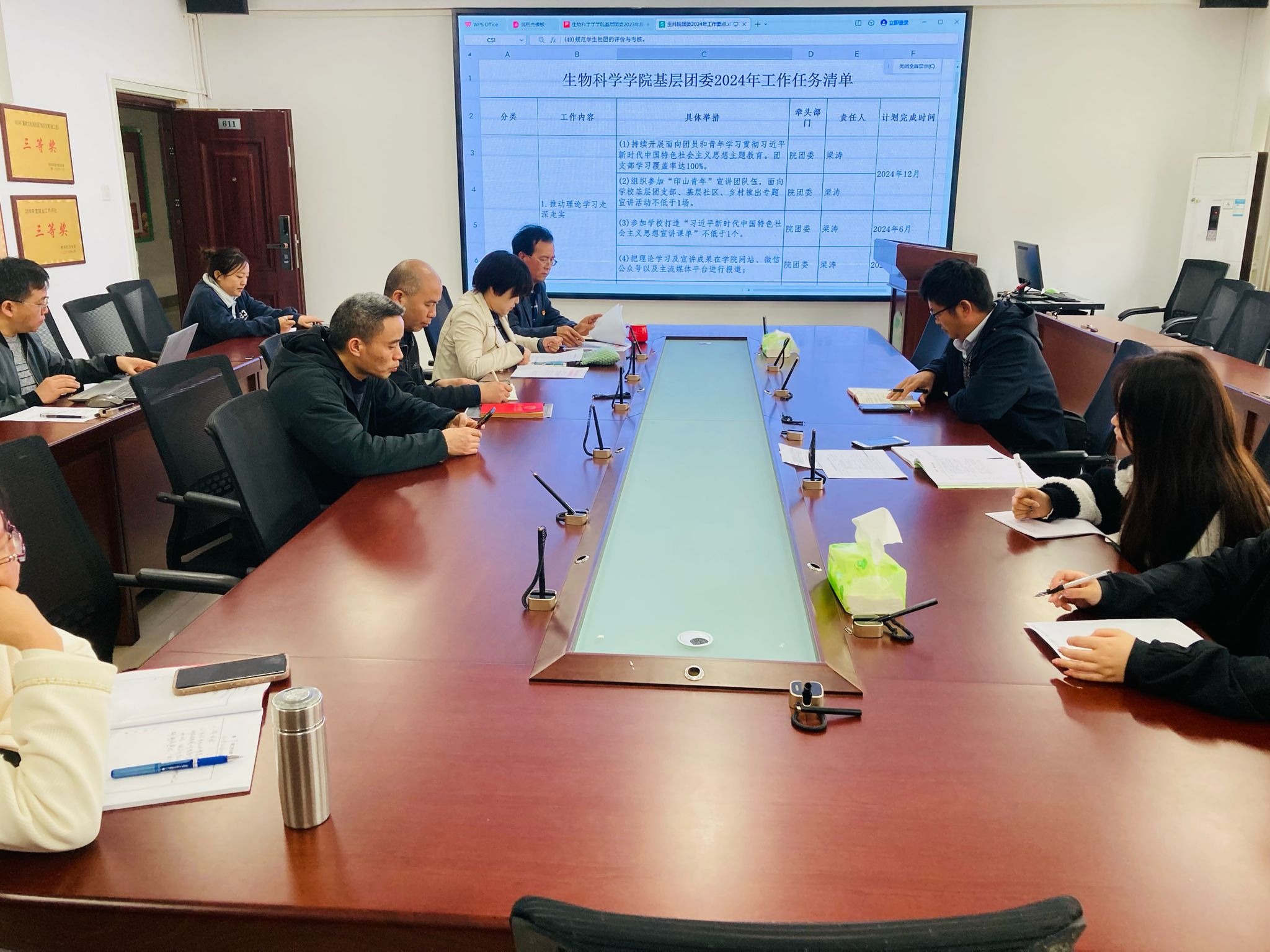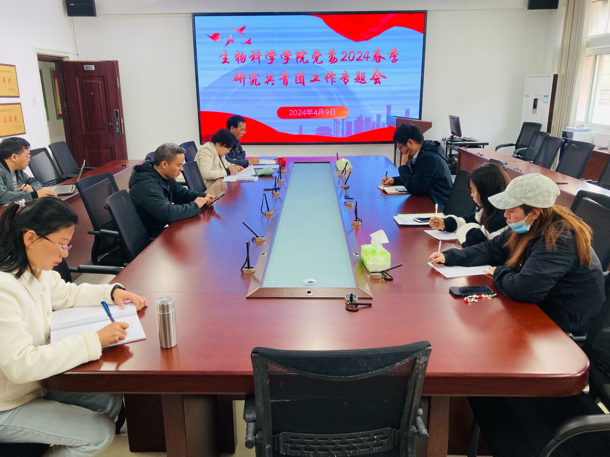 4月9日,在寧靜樓611會議室,生物科學學院黨委召開了共青團工作專題會議。學院黨委書記孫秀華主持會議,與會人員包括黨委副書記王玨、副院長孟澤彬、副院長錢長江,黨委委員李育芳、黨委委員何勇、梁濤,黨委組織員孫悅、教學科研科科長吳超等,學院團委學生會學生干部代表楊婭、鄧方列席參加。